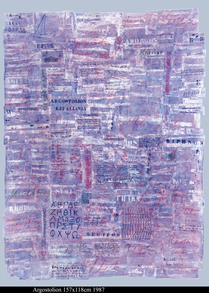 J’aime sentir ce passé oublié très proche de moi. Être humain, c’est peut-être cela : se reconnaître. À Ithaque, j’ai fait des empreintes. L’une tirée d’une racine, une autre d’un fétu. Peut-être entre les deux la place de l’homme ? Le peintre s’y est engouffré. J’ai relevé des traces, signes, plans de port ; j’ai noté des pensées et ramassé des terres et de l’eau des mers.