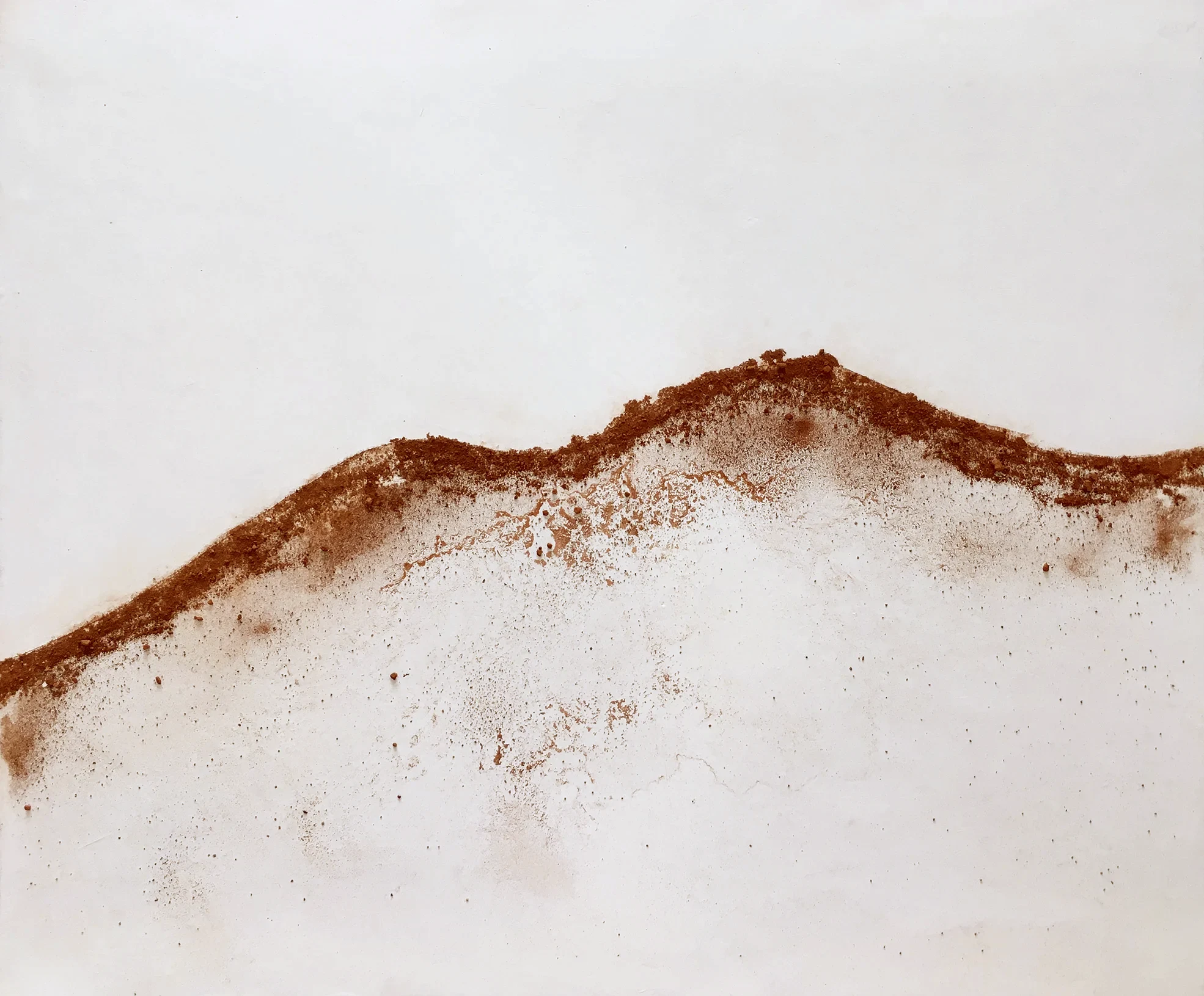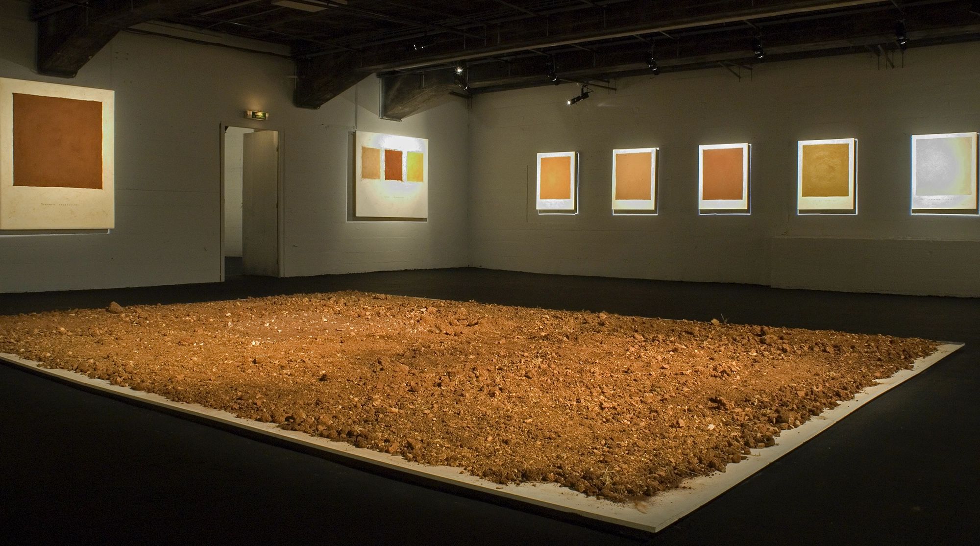 "Fractures du monde" regroupe des séries de peintures, une série de gravure, des installations de sel, d’eau et de terre ainsi qu'un carnet de timbres.