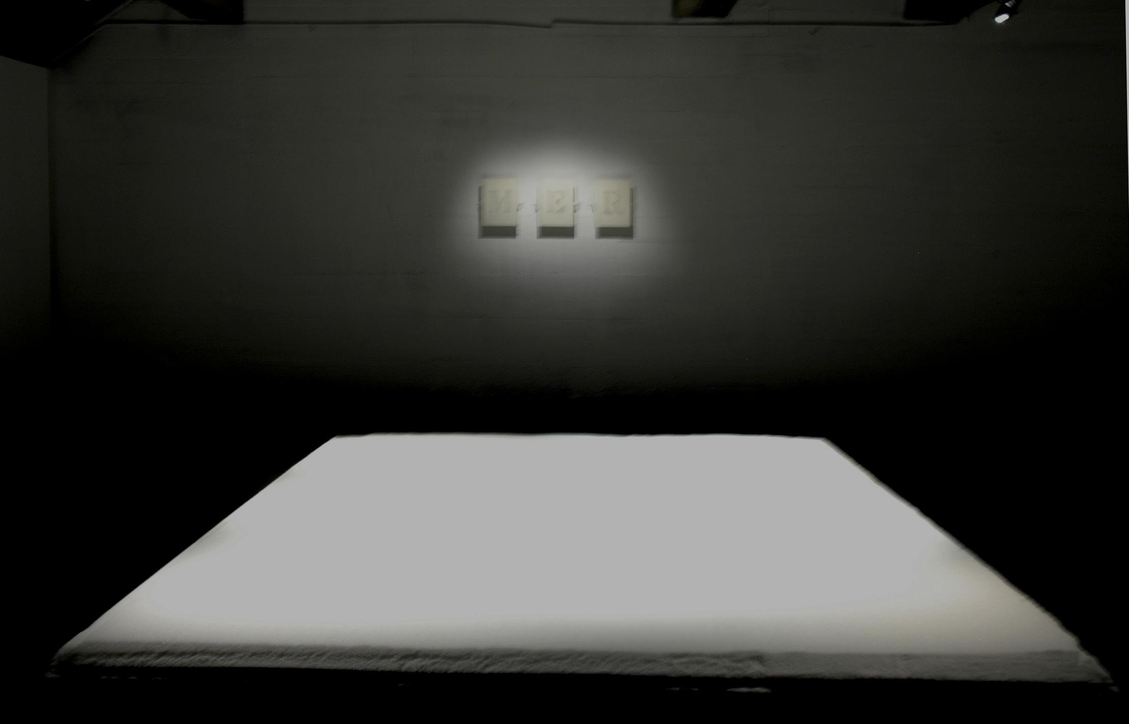 La notion de frontière : terre/mer, fleuve/mer, homme/terre, mots/choses, est particulièrement prégnante dans son travail qui interroge les notions de représentation, de déplacement, de trace et de mémoire.